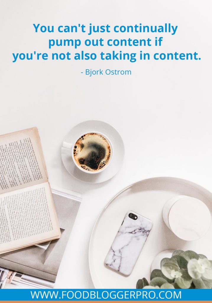 Bjork Ostrom: I think two important takeaways for that. One is for content creators. I think it’s really important for content creators to remember they also have to be content intakers, content consumers is maybe an easier way to say that, but you can’t just continually pump out content if you’re not also taking in content and consuming content. And the key is you don’t want to consume all the time. As a content creator, you should probably be spending most of your time developing your craft.