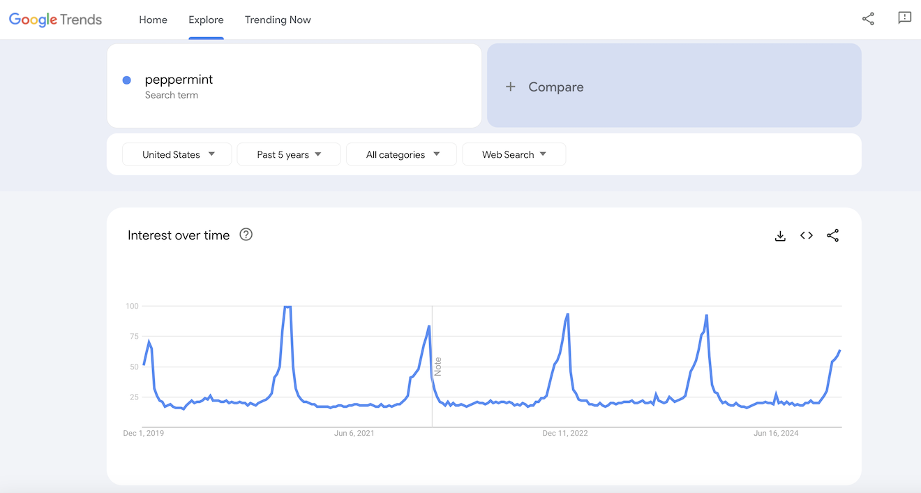 Whether you love it or hate it, eggnog will most definitely be another popular search term as we head into December! Just look at these spikes: