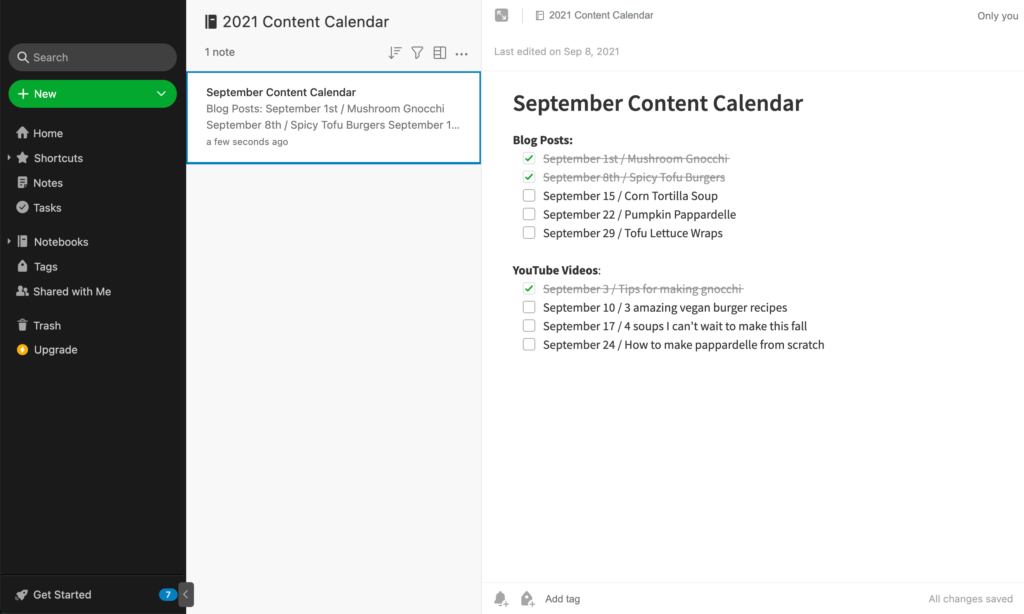 Evernote is an app designed for note-taking, organizing, and task management, and it’s another great option for planning out your content calendar.
