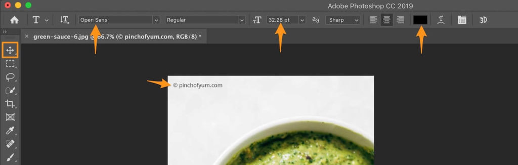 Add your text, reposition it using the Move tool, and adjust the font, size, and color using the Text tool.