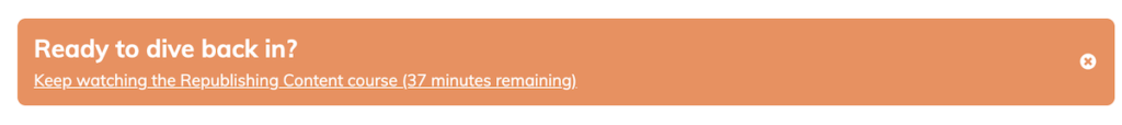 If you started a course but haven’t quite finished yet, you’ll see an orange banner reminding you where you were and showing you how much time is left to complete the course: