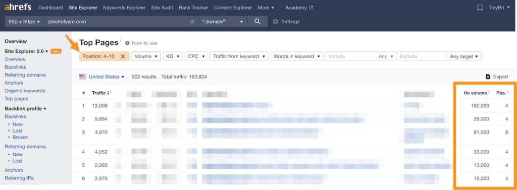You can use a few tools to look at the search volume of your posts, including Ahrefs, Semrush, and Google Search Console. You’ll just want to sort your posts by volume and then consider republishing those with the highest search volumes (that also aren’t ranking higher than position 4).